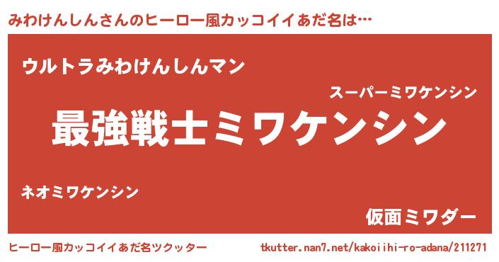 | 意味不明あだ名 | 『自称みわけんしん』 |