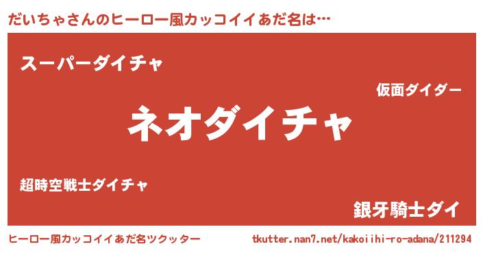 | 胡散臭い通販商品みたいなあだ名 | 『来世でも幸せになれる水素水…その名も「だいちゃ」』 |