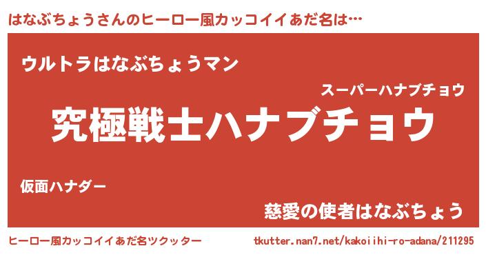 | 男性向けラノベタイトル風あだ名 | 『Re:はなぶちょうから始める異世界生活』 |