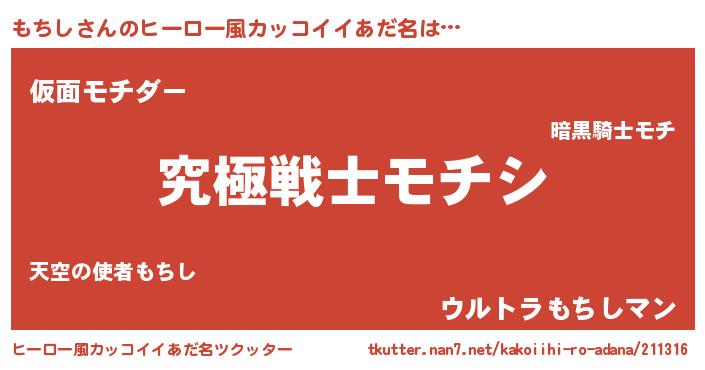 | 男性向けラノベタイトル風あだ名 | 『もちしに滅ぼされるだけの簡単なお仕事です』 |