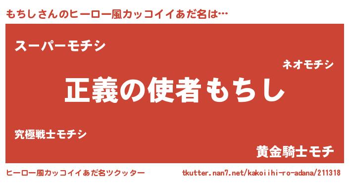 | 男性向けラノベタイトル風あだ名 | 『はたらくもちしさま!』『緋弾のモチシ』 |