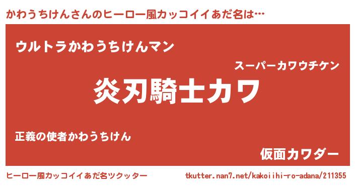 | 意味不明あだ名 | 『とにかく怪しいかわうちけん』 |