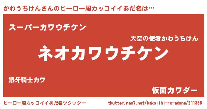 | ヘコむあだ名 | 『かわうちけん(震え声)』『かわっふぃ~』 |