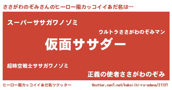 | 男性向けラノベタイトル風あだ名 | 『この素晴らしい世界にささがわのぞみを!』 |
