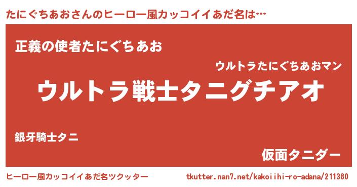 | 意味不明あだ名 | 『自称たにぐちあお』 |