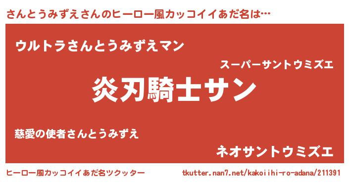 | 意味不明あだ名 | 『とにかく怪しいさんとうみずえ』 |