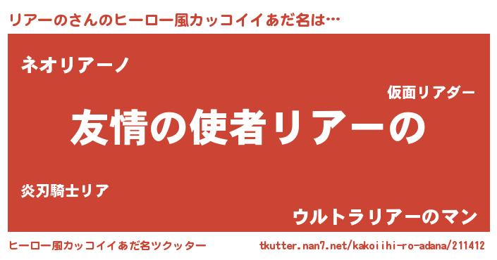 | ポケモン風あだ名 | 『リアゴンZ』『リックウザ』 |