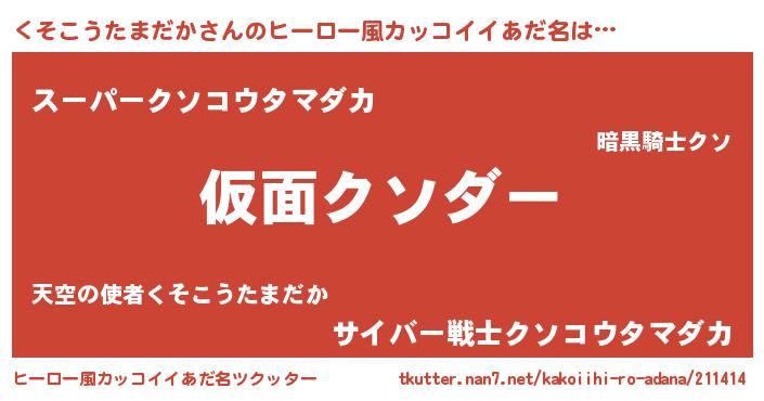| 料理風あだ名 | 『くそこうたまだかごはん』 |