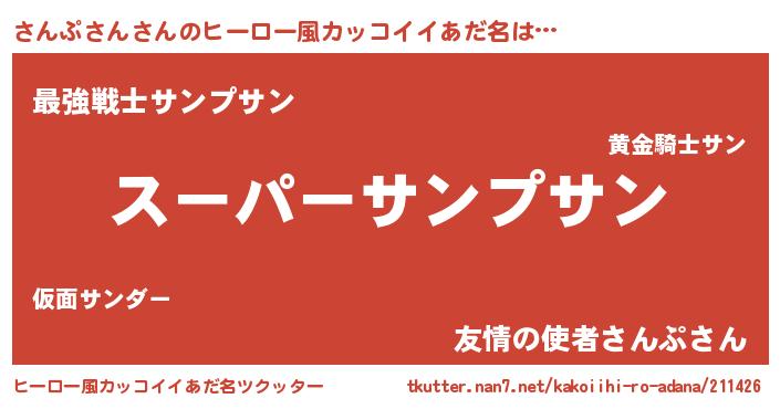 | 胡散臭い通販商品みたいなあだ名 | 『億万長者になれる霊験あらたかなお札…その名も「さんぷさん」』 |