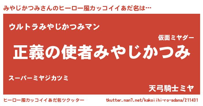 | 男性向けラノベタイトル風あだ名 | 『おまえをオタクにしてやるから、俺をみやじかつみにしてくれ! 』 |