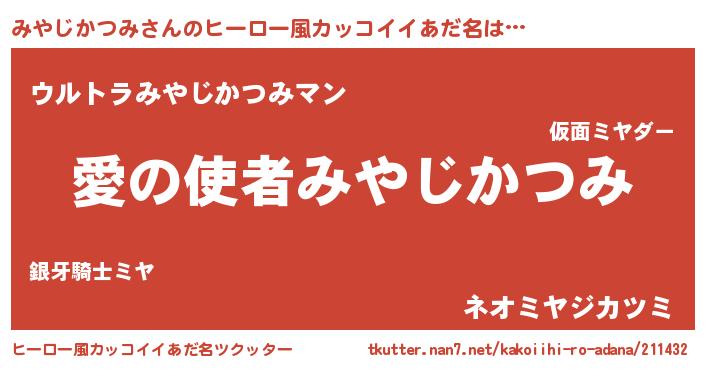 | 男性向けラノベタイトル風あだ名 | 『転生したらみやじかつみだった件』 |