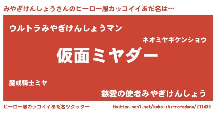 | 意味不明あだ名 | 『住所不定無職みやぎけんしょう(3歳)』 |