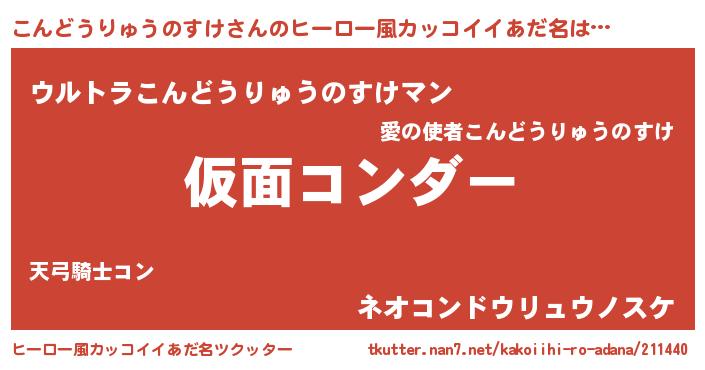 | 意味不明あだ名 | 『住所不定無職こんどうりゅうのすけ(9歳)』 |
