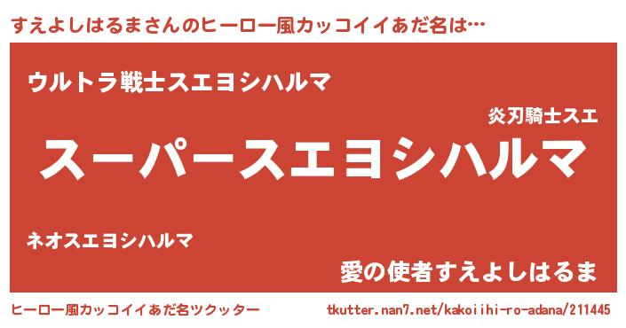 | 男性向けラノベタイトル風あだ名 | 『すえよしはるまに滅ぼされるだけの簡単なお仕事です』 |