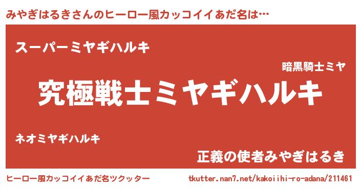 | 恥ずかしいあだ名 | 『ミヤギハルキデラックス』『みやちん』 |