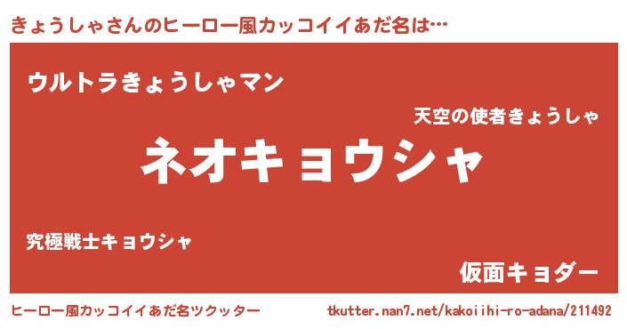 | 胡散臭い通販商品みたいなあだ名 | 『来世でも幸せになれる水素水…その名も「きょうしゃ」』 |