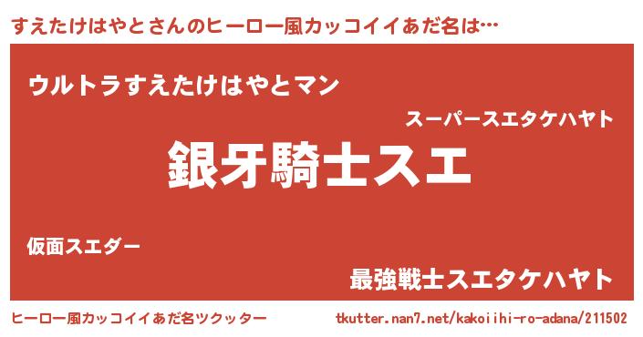 | ポケモン風あだ名 | 『ヒスエタケハヤト』『スエタダネ』 |