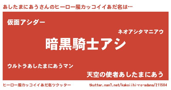 | 意味不明あだ名 | 『とにかく怪しいあしたまにあう』 |