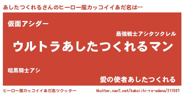 | 男性向けラノベタイトル風あだ名 | 『アシタツクレルスレイヤー』 |