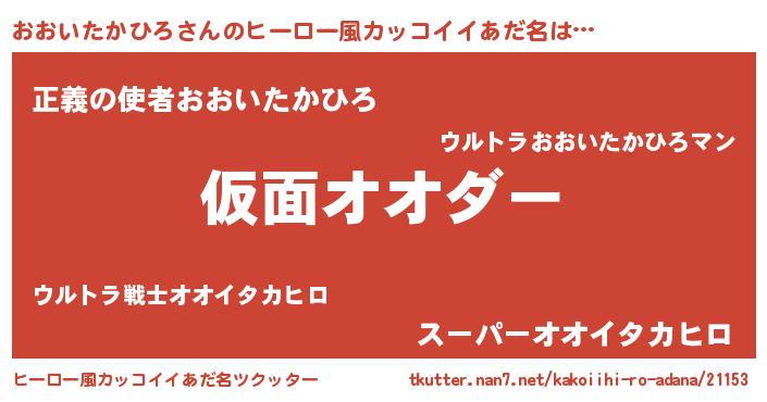 | 男性向けラノベタイトル風あだ名 | 『魔弾の王とおおいたかひろ』 |