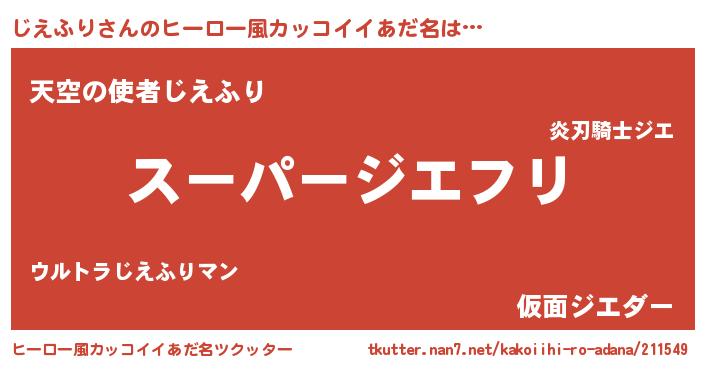 | 料理風あだ名 | 『じえふりごはん』 |