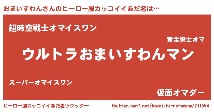 | 女子向けラノベタイトル風あだ名 | 『おまいすわんの雑貨屋さん』 |