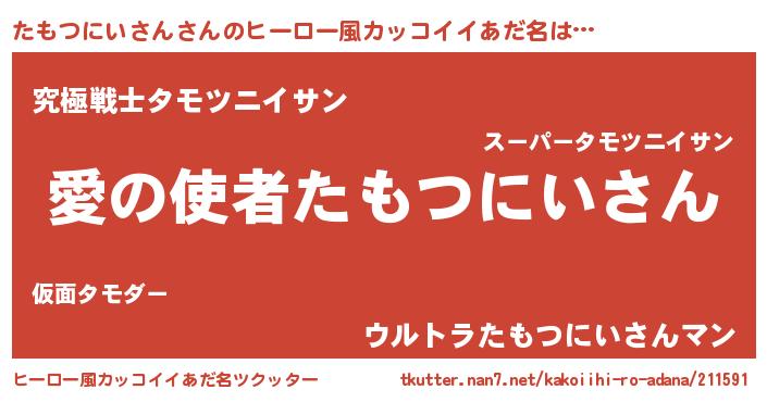 | 女子向けラノベタイトル風あだ名 | 『たもつにいさん恋絵巻』 |