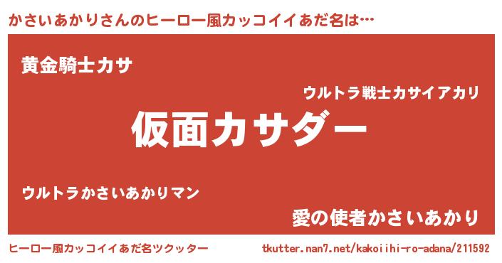 | 意味不明あだ名 | 『住所不定無職かさいあかり(98歳)』 |