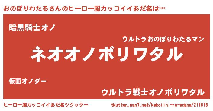 | 胡散臭い通販商品みたいなあだ名 | 『前代未聞の水素水…その名も「おのぼりわたる」』 |