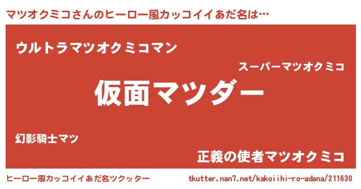 | 意味不明あだ名 | 『住所不定無職マツオクミコ(74歳)』 |