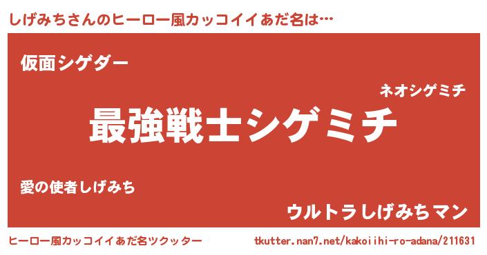 | 男性向けラノベタイトル風あだ名 | 『Re:しげみちから始める異世界生活』 |