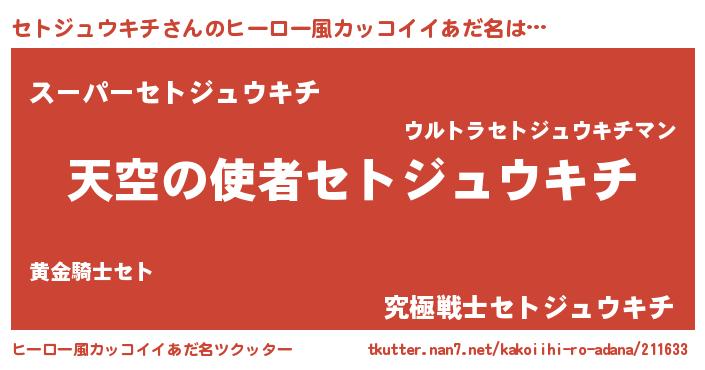 | 男性向けラノベタイトル風あだ名 | 『ノーゲーム・ノーセトジュウキチ』 |