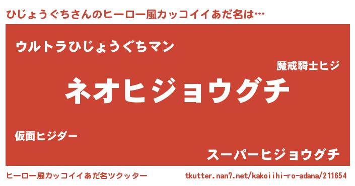 | 男性向けラノベタイトル風あだ名 | 『ひじょうぐちという概念が存在しない退屈な世界 』 |