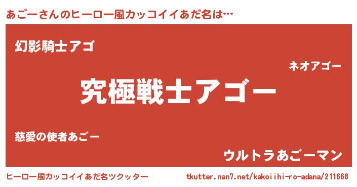 | 意味不明あだ名 | 『自称あごー』『とにかく怪しいあごー』 |