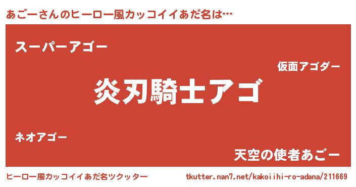 あごーさんのヒーロー風カッコイイあだ名をツクッター!