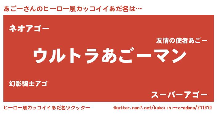 | 意味不明あだ名 | 『あごーフォーエバー』『永久保存あごー』 |