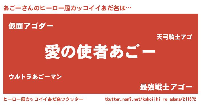| 女子向けラノベタイトル風あだ名 | 『あごー恋絵巻』『首の姫と首なしあごー』 |