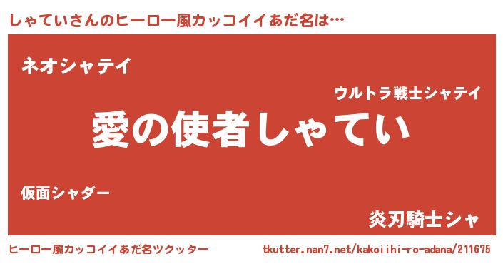 | ヘコむあだ名 | 『しゃてい(震え声)』『しゃお』 |