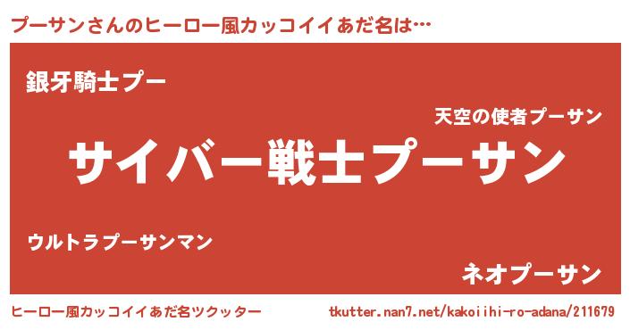 | 男性向けラノベタイトル風あだ名 | 『転生したらプーサンだった件』 |
