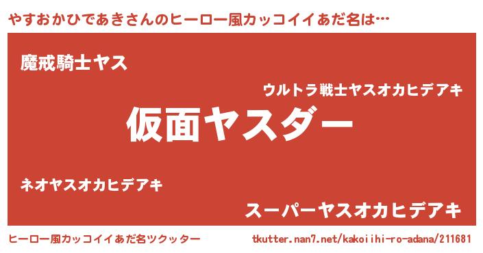 | 男性向けラノベタイトル風あだ名 | 『やすおかひであきに滅ぼされるだけの簡単なお仕事です』 |