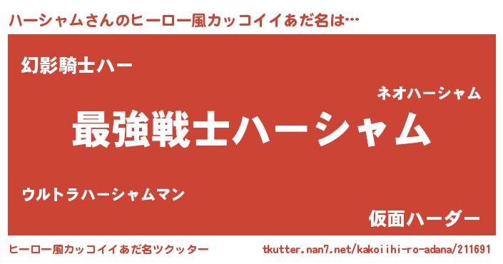 | 意味不明あだ名 | 『自称ハーシャム』『永久保存ハーシャム』 |