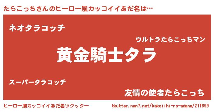 | 女子向けラノベタイトル風あだ名 | 『たらこっちは平凡を望む』 |