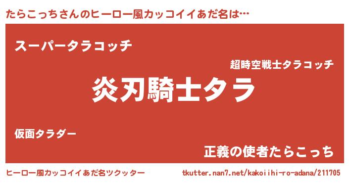 | 胡散臭い通販商品みたいなあだ名 | 『全米が絶賛したサプリメント…その名も「たらこっち」』 |