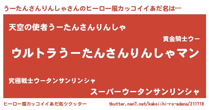 | 男性向けラノベタイトル風あだ名 | 『うーたんさんりんしゃに滅ぼされるだけの簡単なお仕事です』 |
