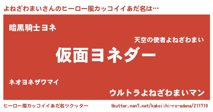 | 男性向けラノベタイトル風あだ名 | 『この素晴らしい世界によねざわまいを!』 |