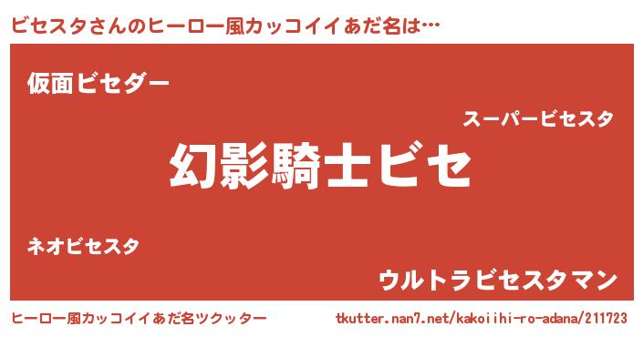 | 男性向けラノベタイトル風あだ名 | 『ビセスタの嫁は女の子じゃないと思った?』 |