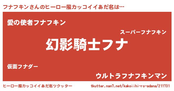 | 男性向けラノベタイトル風あだ名 | 『フナフキンに滅ぼされるだけの簡単なお仕事です』 |