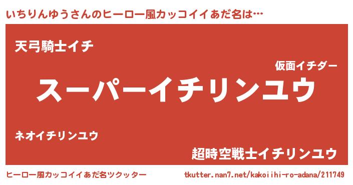 | 男性向けラノベタイトル風あだ名 | 『イチリンユウスレイヤー』 |