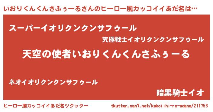 | 胡散臭い通販商品みたいなあだ名 | 『モンドセレクションを受賞したイリジウム磁石…その名も「いおりくんくんさふぅーる」』 |