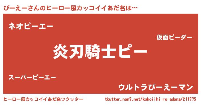 | 意味不明あだ名 | 『とにかく怪しいぴーえー』 |
